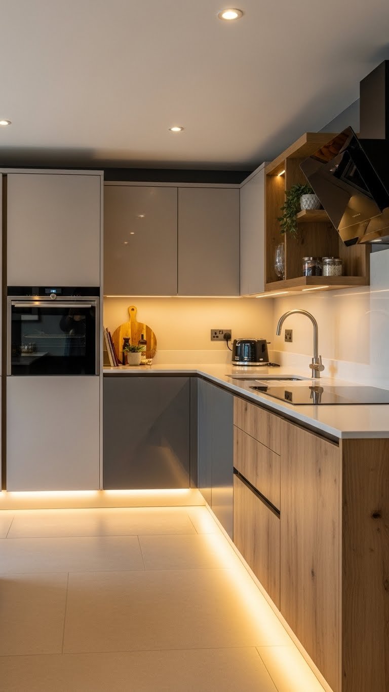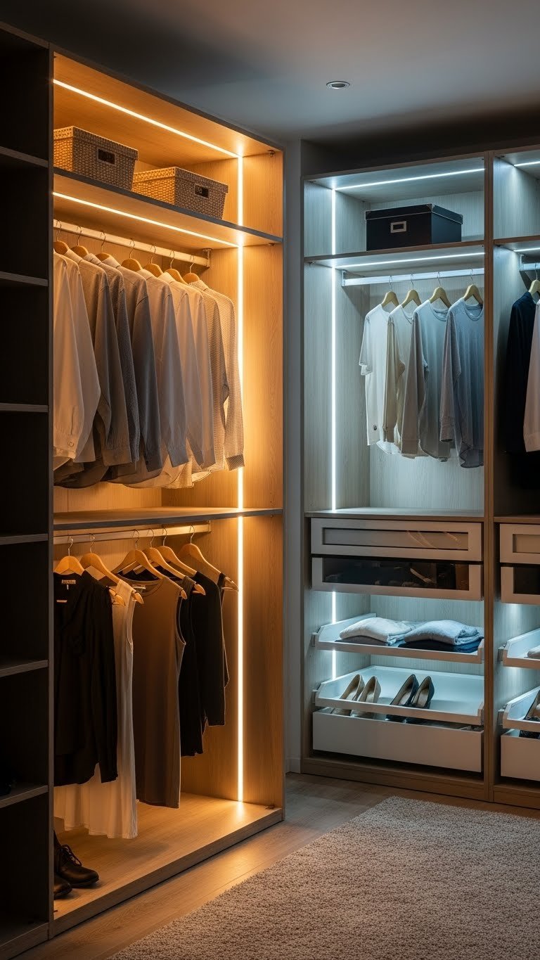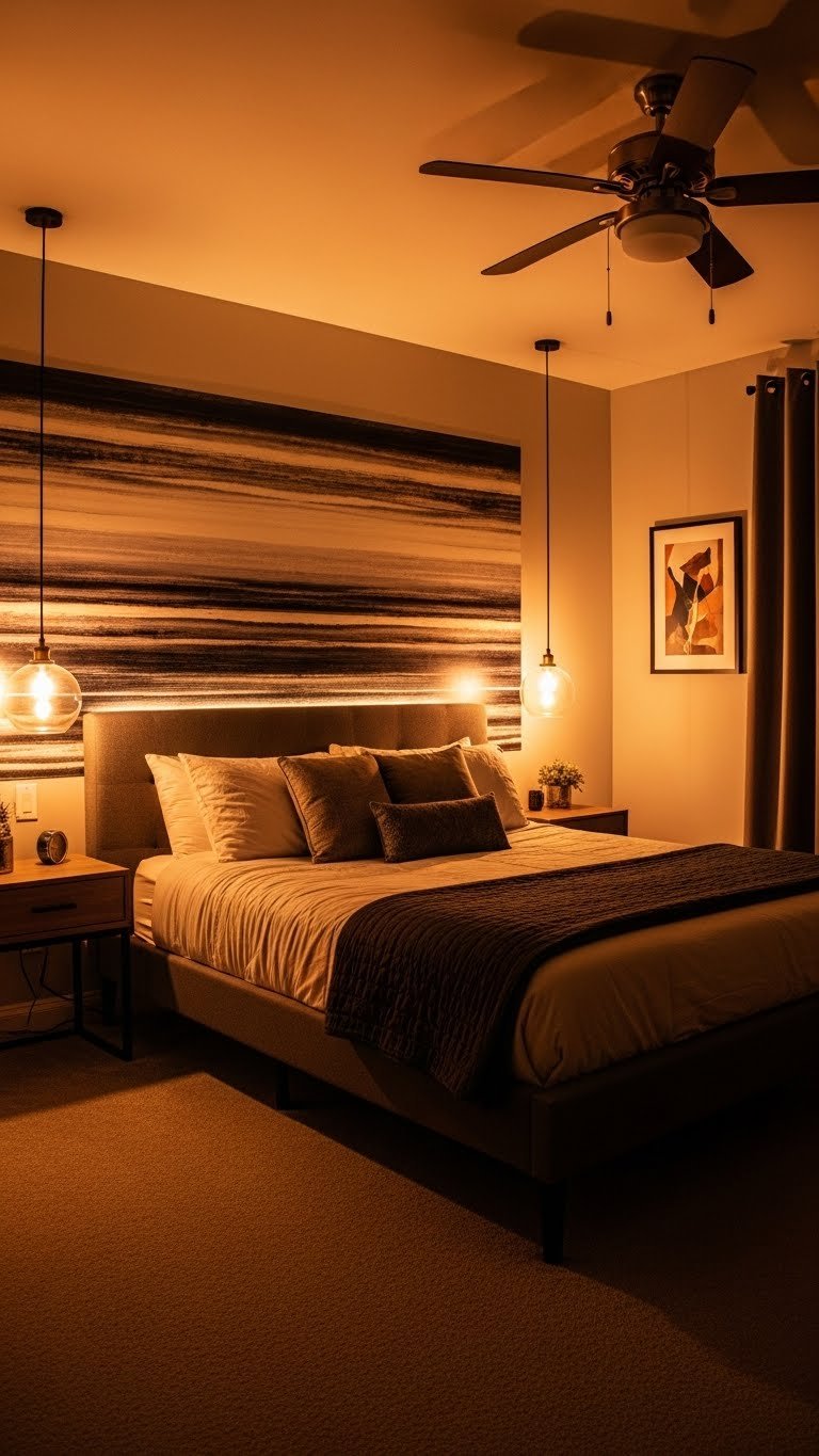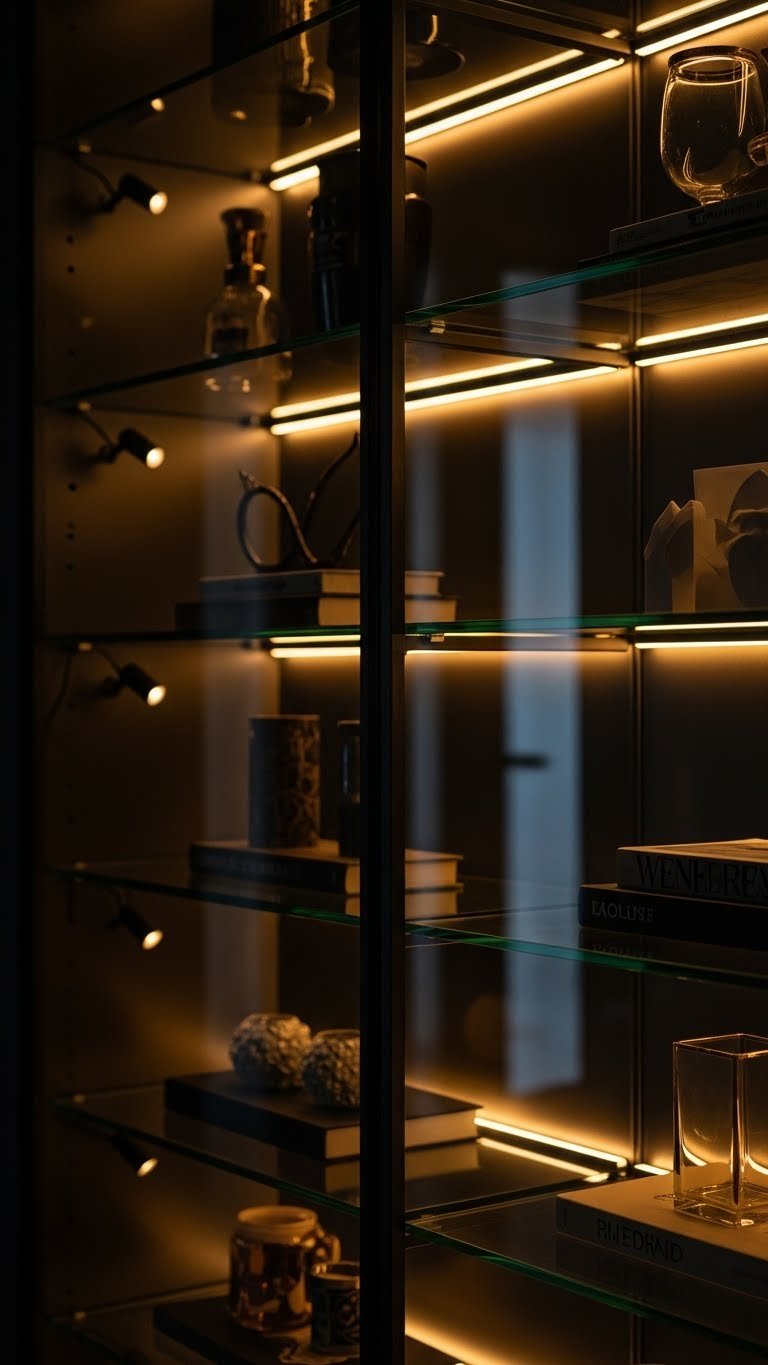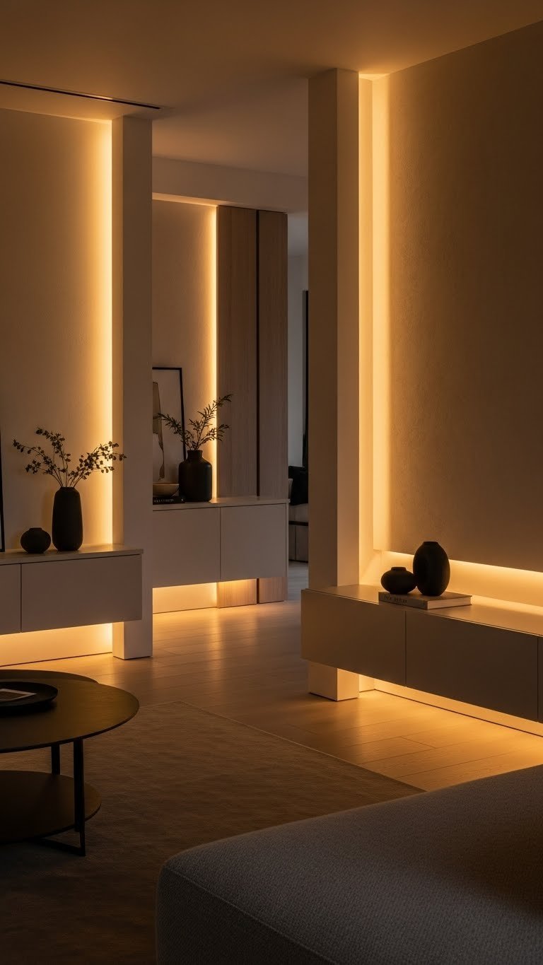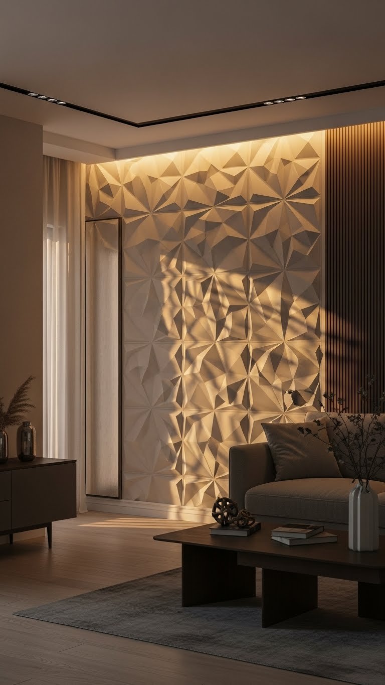 Use ambient lighting to softly illuminate the wall’s texture, and incorporate accent lighting to highlight specific slats, creating depth and visual intrigue that’ll make your TV area feel intentionally designed.