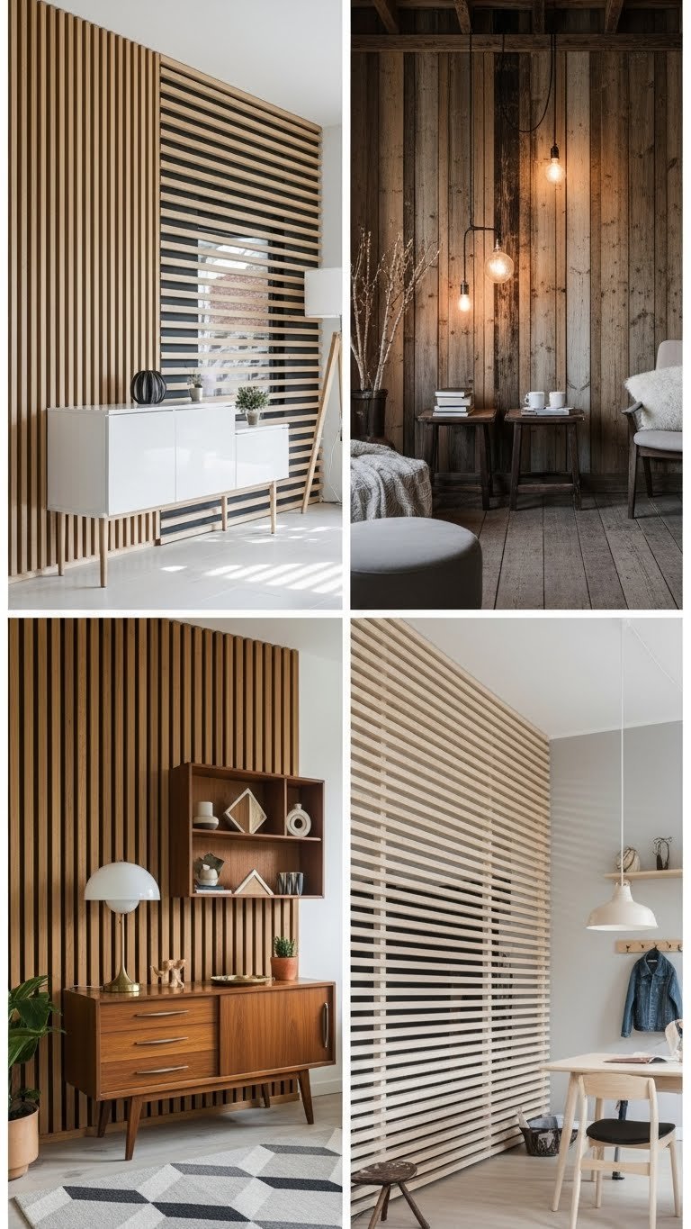 You’ll find mid-century modern and Scandinavian designs particularly complement slat walls, creating visual depth and architectural interest.