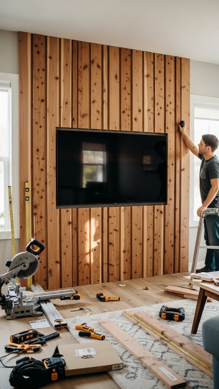 Because DIY wooden slat TV walls can transform your space without breaking the bank, you’ll find this installation process surprisingly manageable.