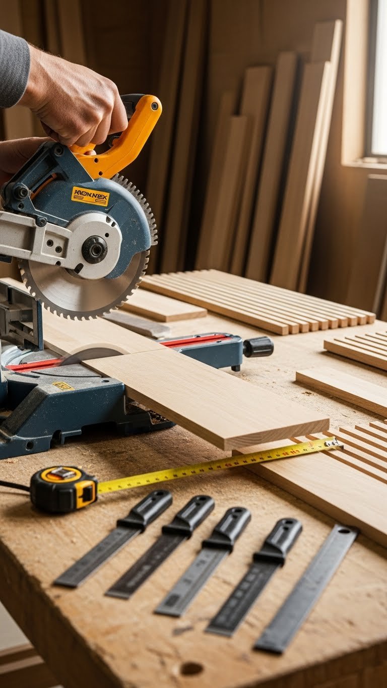 Three essential tools can transform your wooden slat TV wall panel cutting from amateur to professional-grade: a miter saw, a high-quality measuring tape, and sharp wood cutting blades.