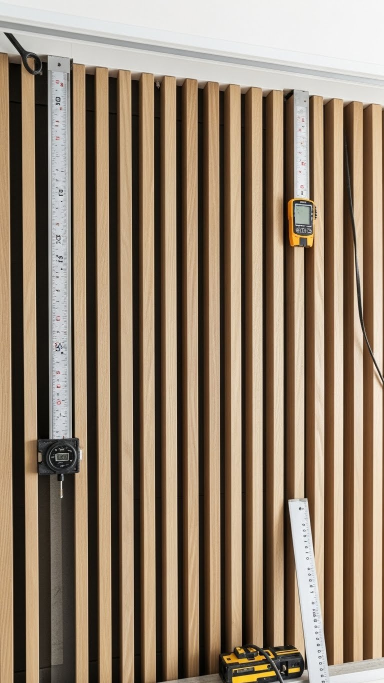 Use a laser measure or long metal tape to capture accurate wall dimensions. Measure height, width, and depth, accounting for outlets, baseboards, and potential obstructions that could impact your wooden slat design.