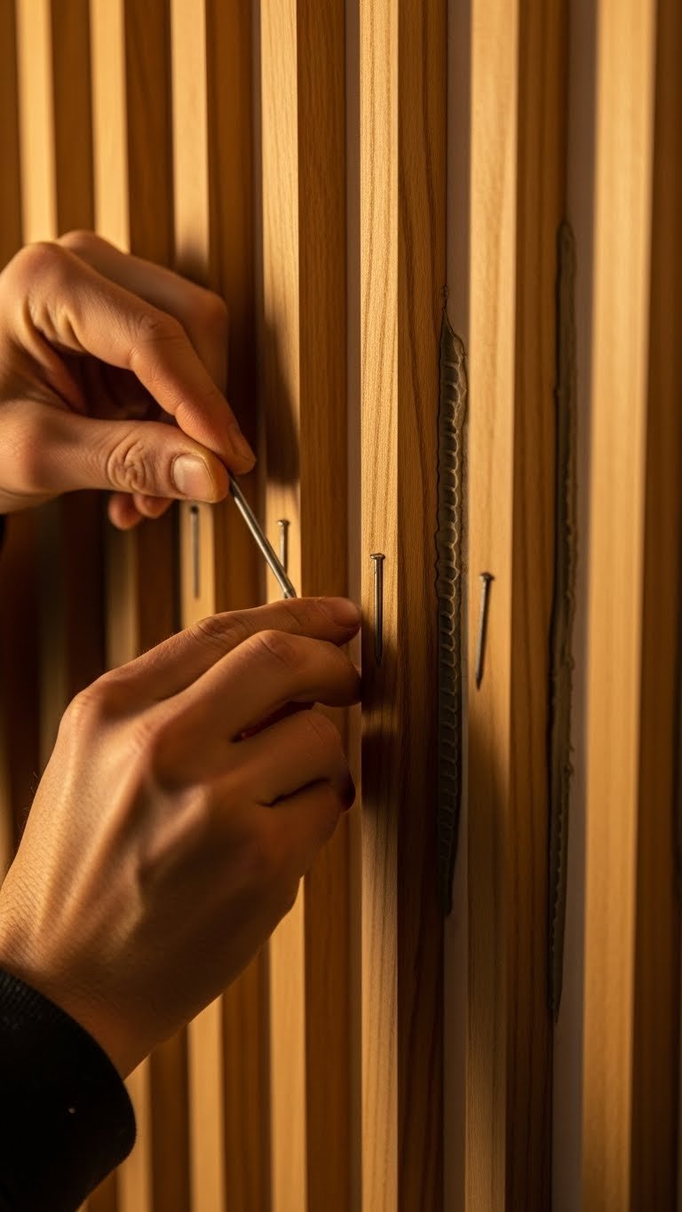 Combine strategic nailing with construction adhesive to create a seamless, durable wooden slat TV wall that’ll withstand time and showcase your design vision.