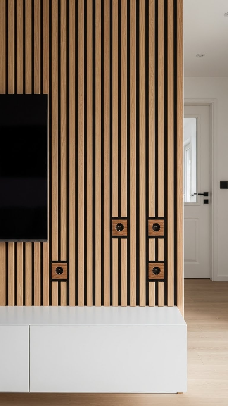 Because electrical outlets can disrupt the sleek aesthetic of a wooden slat TV wall, you’ll need a strategic approach to seamlessly integrate them into your design.