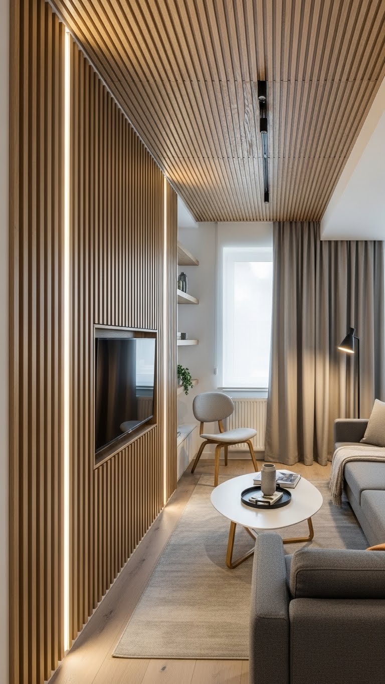 In compact living spaces, wooden slat walls offer ingenious design solutions that maximize visual depth and functionality without overwhelming square footage.