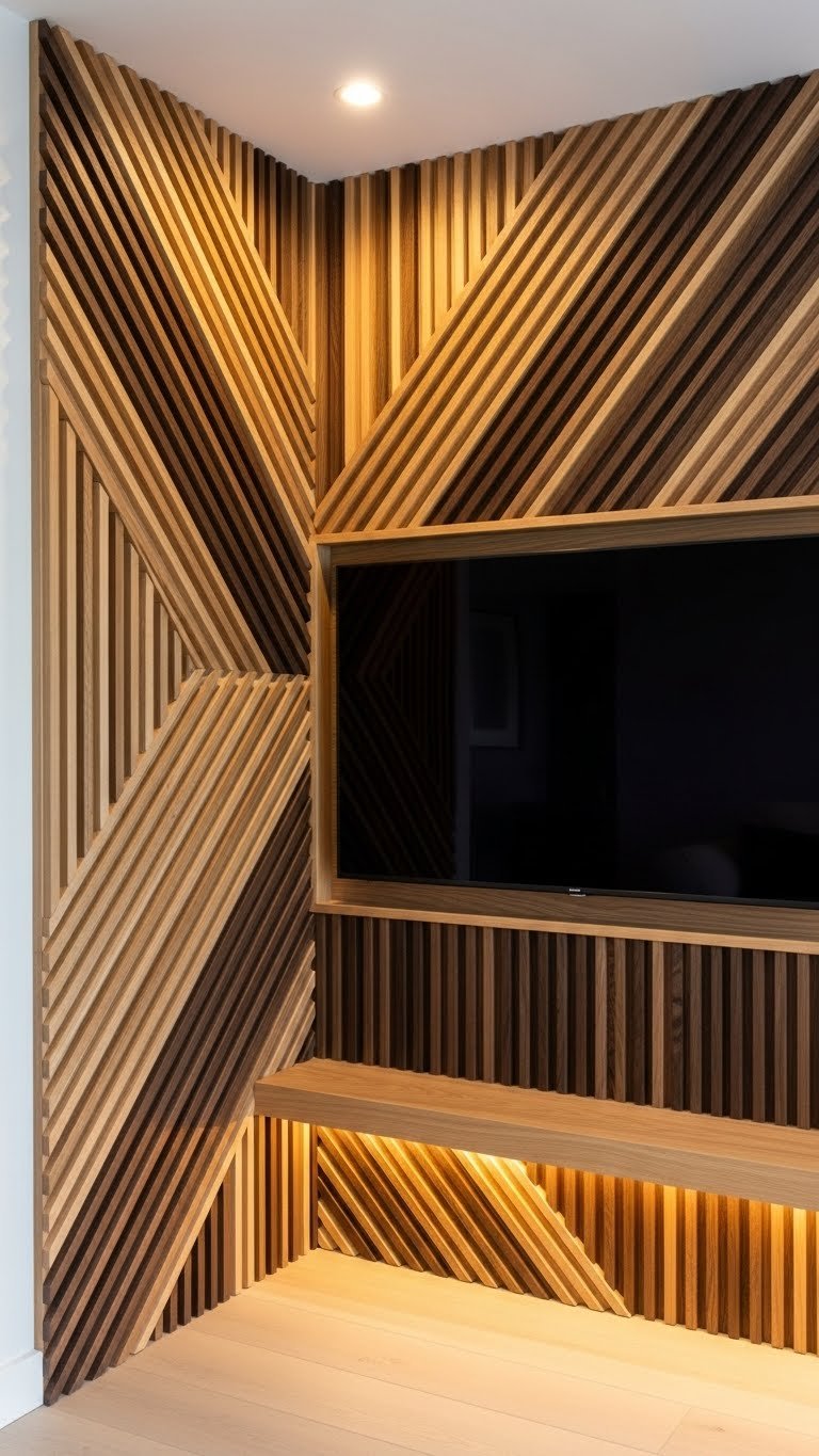 Anyone looking to elevate their living space can transform a wooden slat TV wall into a stunning corner or accent feature that seamlessly blends functionality with aesthetic appeal. Strategic slat arrangements create dynamic visual interest, especially when you play with varying wood tones, depths, and orientations in corner accents that draw the eye and define spatial boundaries.