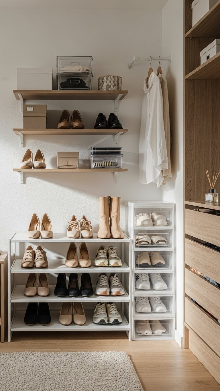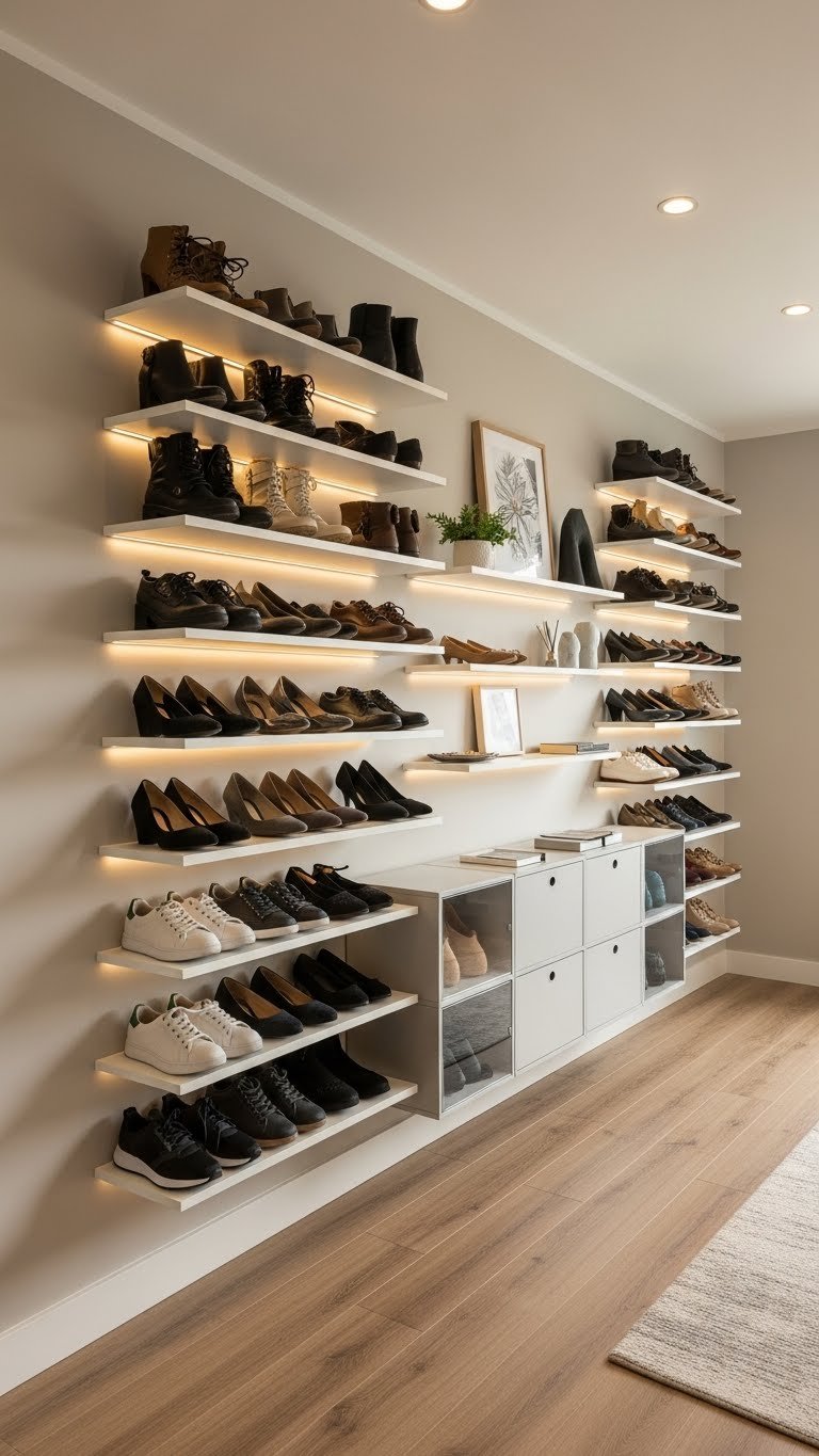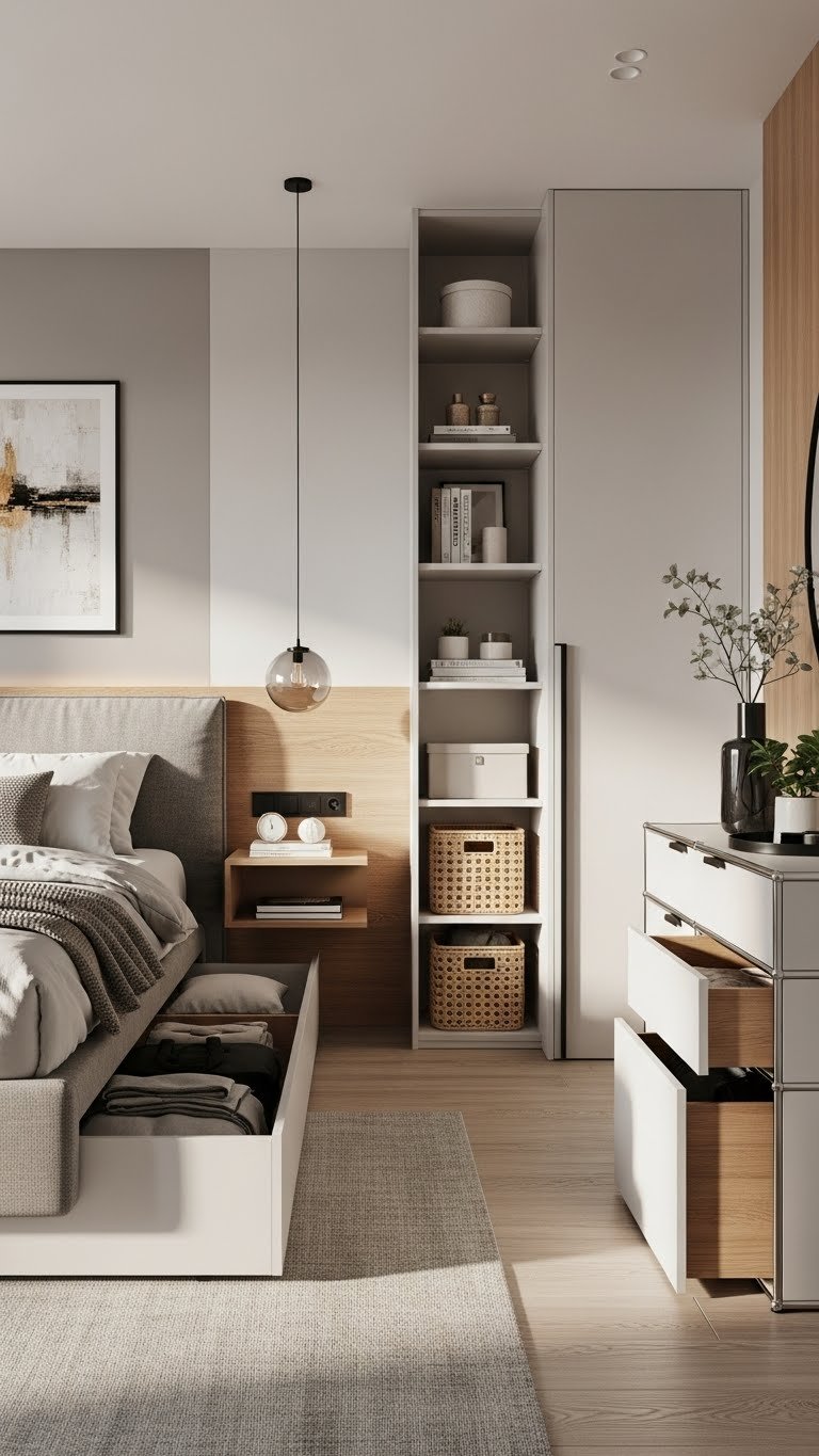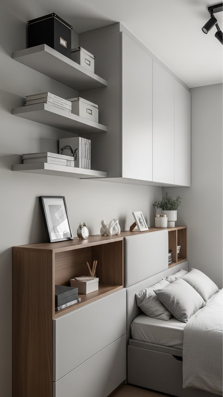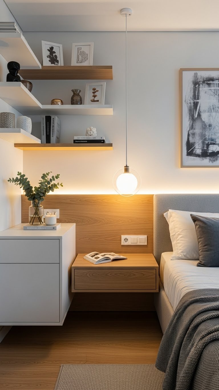 You’ll transform tight areas through space optimization techniques, using minimalist decor that creates vertical interest and integrates seamlessly with your TV display, making even the smallest rooms feel expansive and purposefully designed.