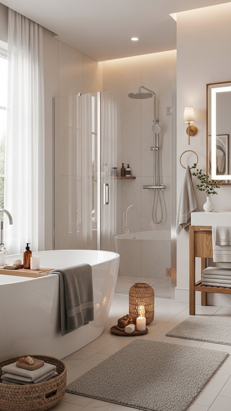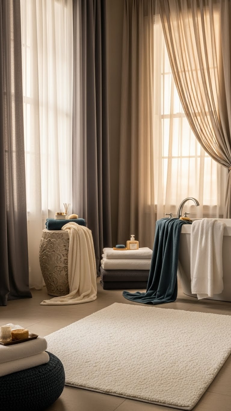 These natural materials elevate your bathroom’s aesthetic, turning tactile experiences into moments of pure comfort and sophisticated design.