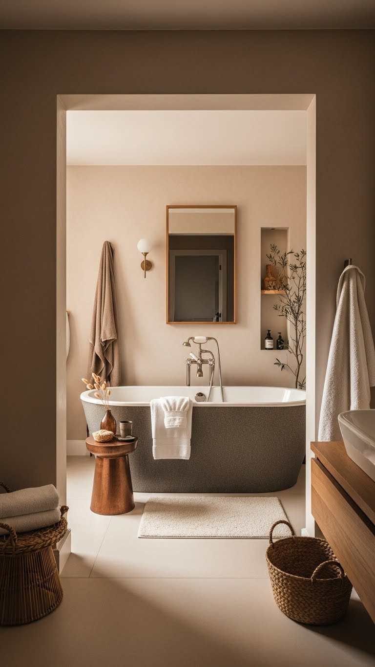 Serene hues like soft sage, dusty blue, and warm taupe create a tranquil environment. Calming neutrals paired with gentle textures invite a sense of peace, transforming your bathroom into a personal sanctuary that soothes and rejuvenates.