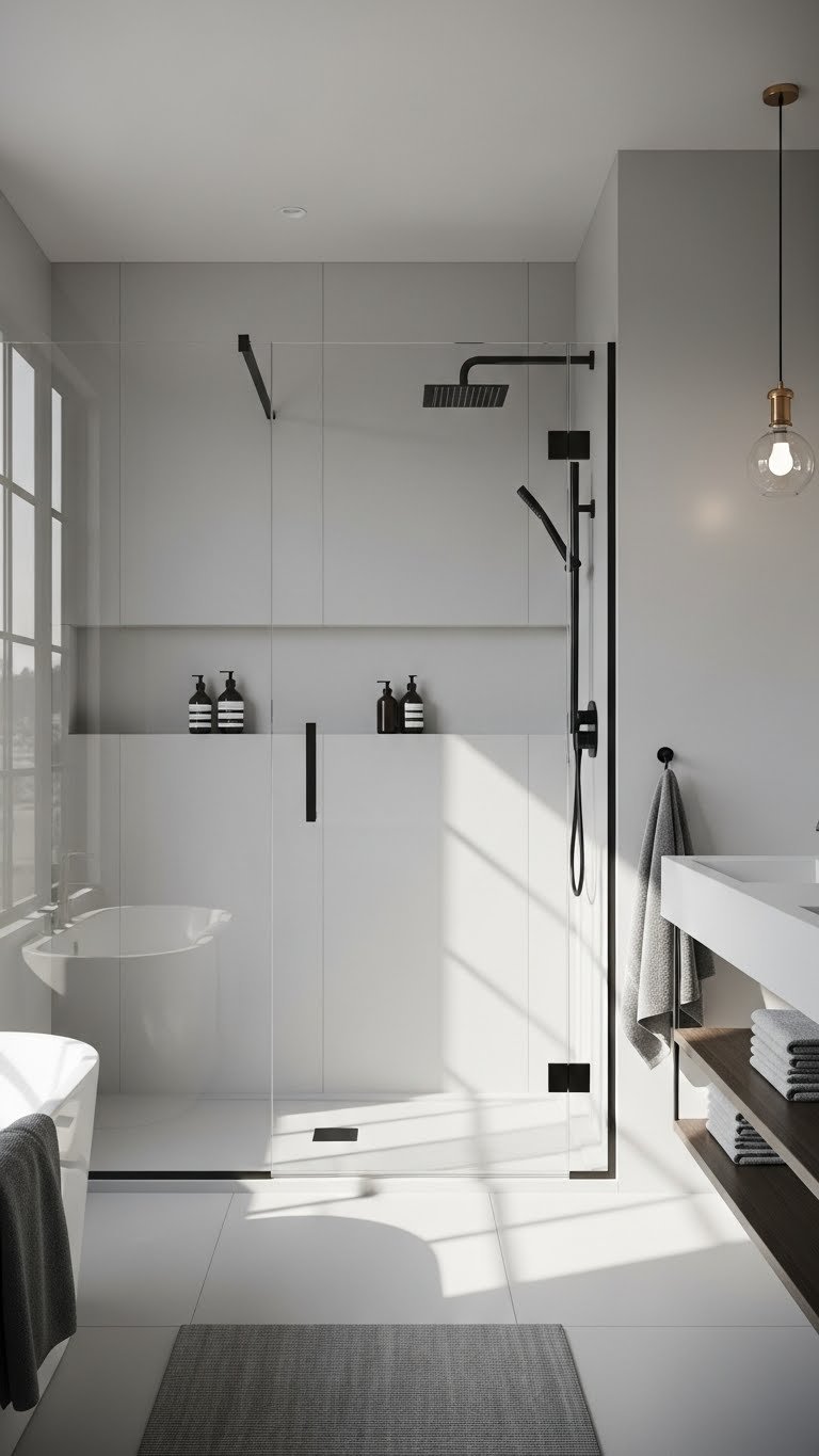 Consider innovative shower accessibility features like walk-in designs and sleek, modern curtain alternatives such as glass panels.