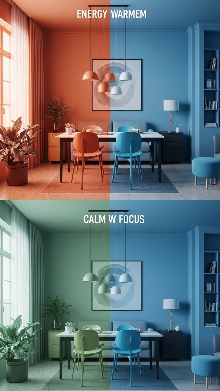 Opt for neutral base tones like soft grays or whites, then layer with bold accent colors.