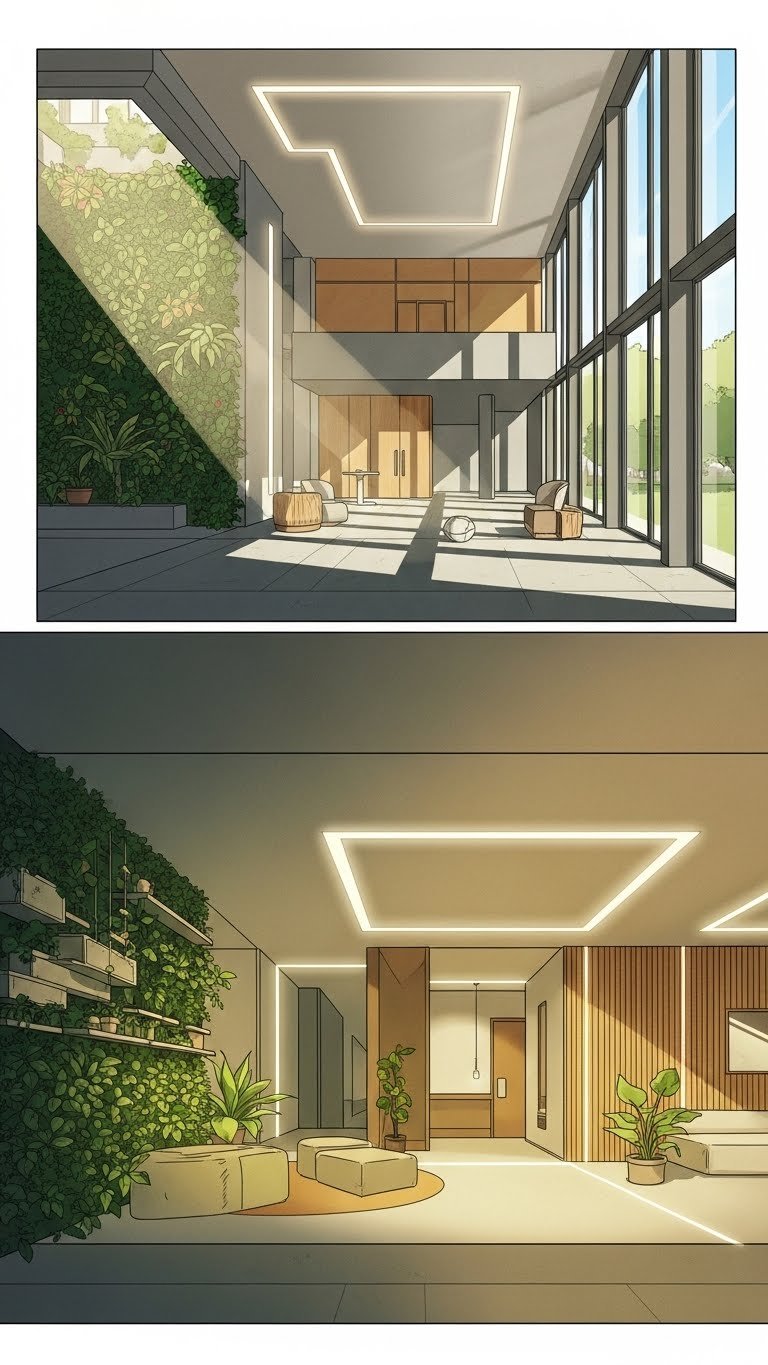 Arrange chairs at slight angles, incorporate soft cushions, and design spaces that feel both open and sheltered.