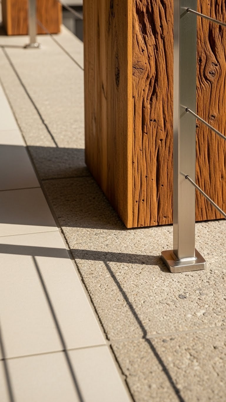 By strategically mixing contrasting surfaces—think smooth ceramic tiles against rough stone, sleek metal railings beside weathered wood—you’ll create dynamic visual depth.