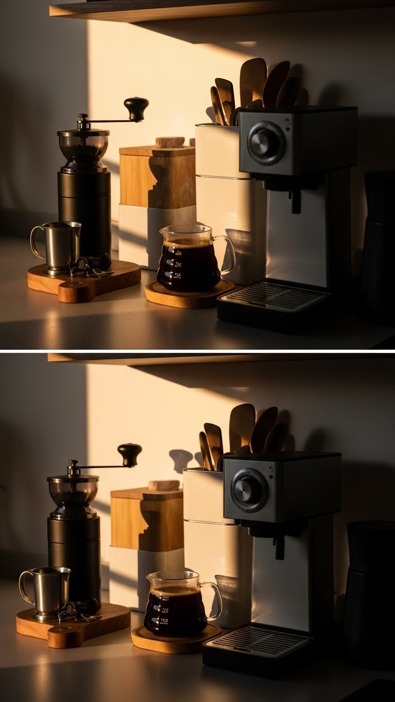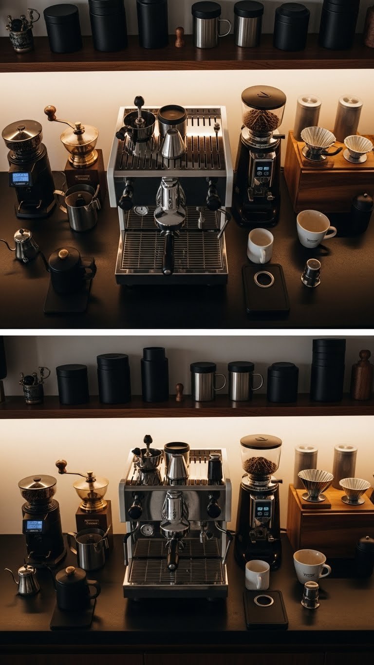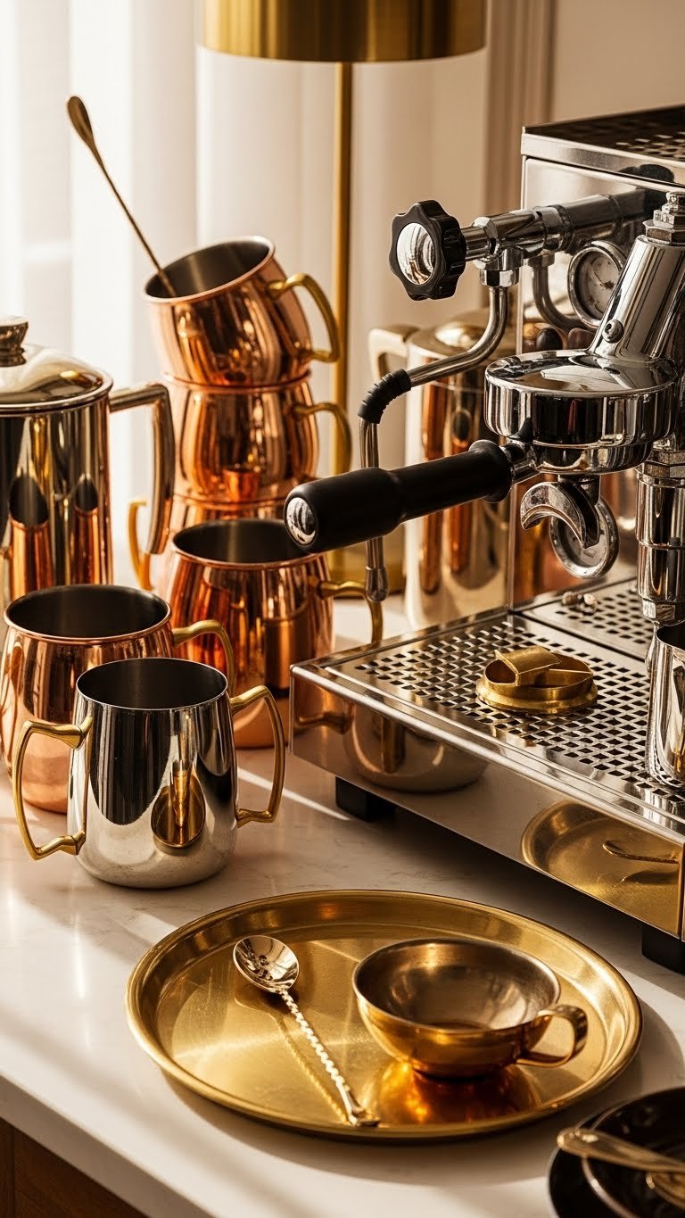Choose sleek espresso machine trays, copper mugs, or metallic stirring spoons to create a curated, elegant atmosphere that reflects your personal style.