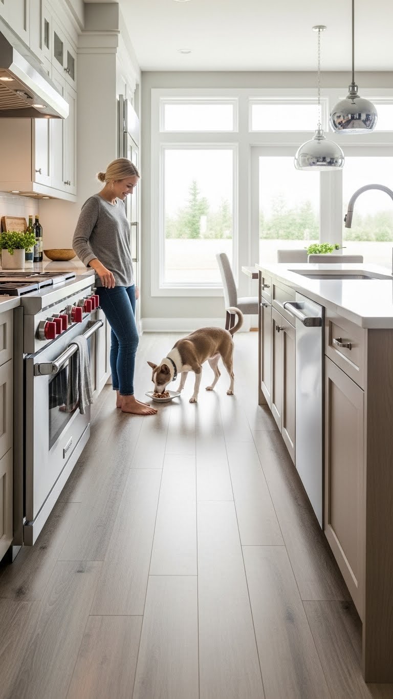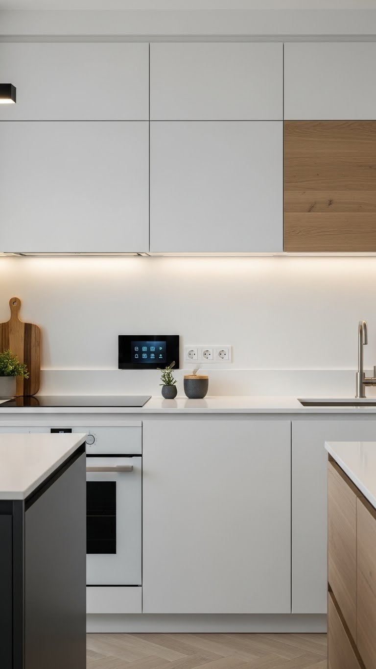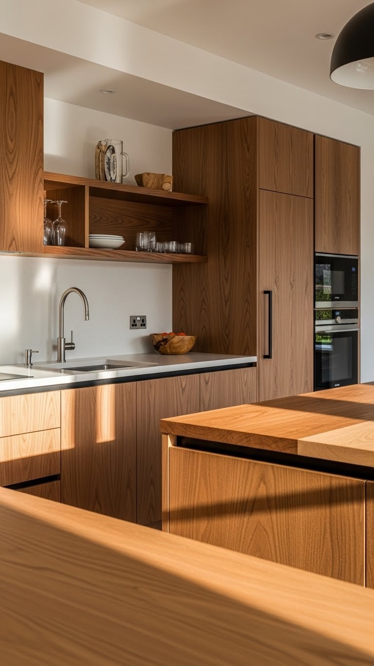 You’ll elevate your space by choosing sustainable materials like bamboo countertops and recycled glass backsplashes.