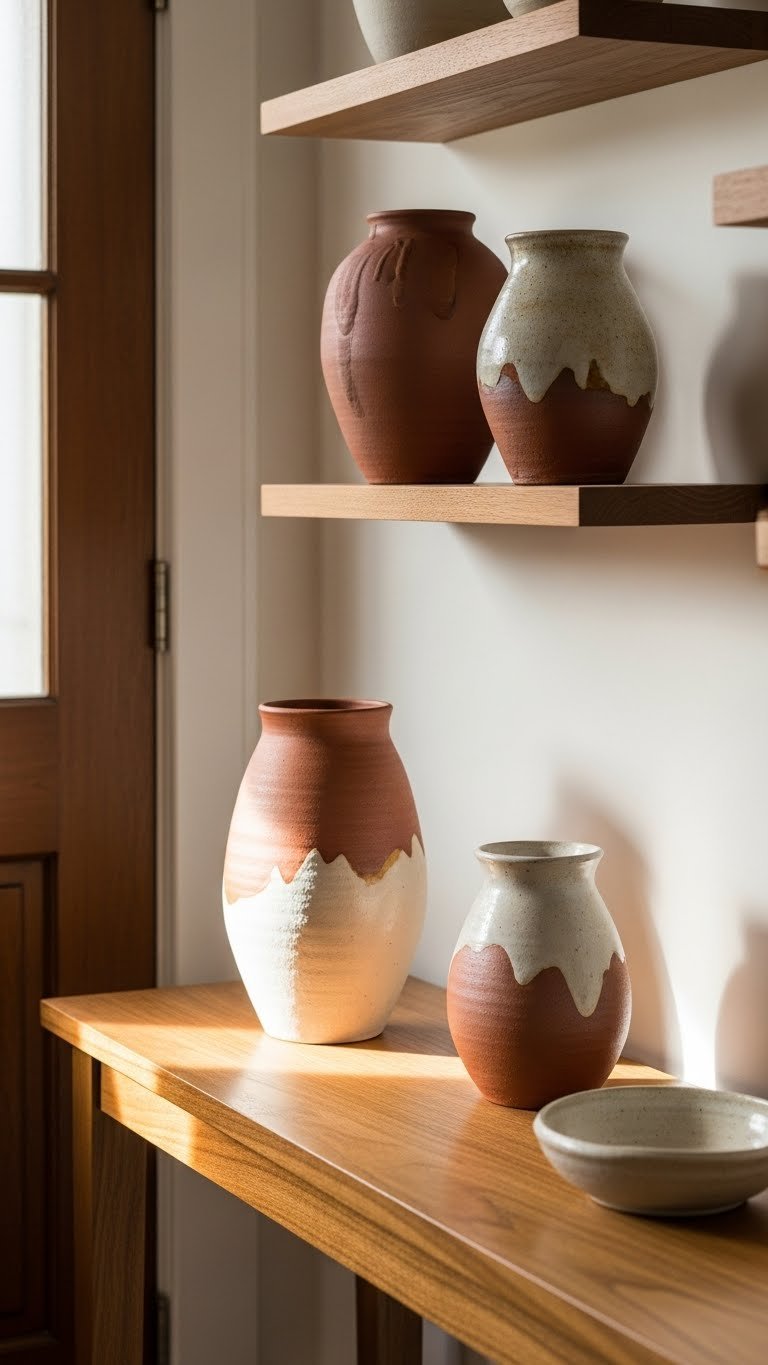 Ceramic styles featuring rustic finishes and monochrome aesthetics offer eco-friendly materials and artisan craftsmanship, ensuring your modern design speaks volumes about your unique taste.