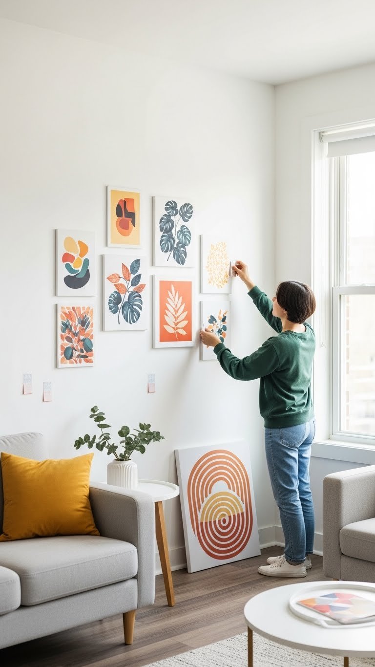 Choose wall art that reflects your style—vintage coffee prints, minimalist sketches, or eclectic gallery walls.