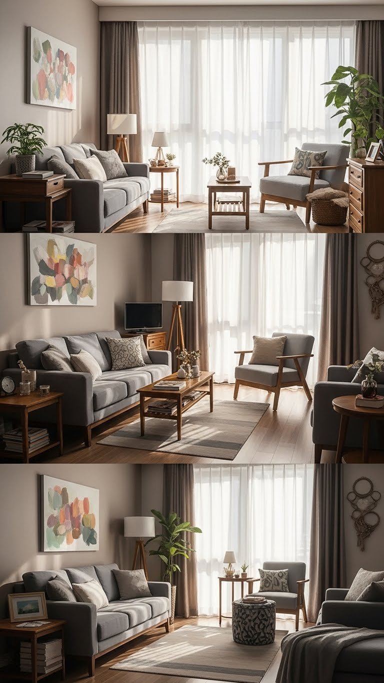 You’ll love blending rustic wooden elements with streamlined metallic accents, creating an eclectic blend that reflects your unique style.