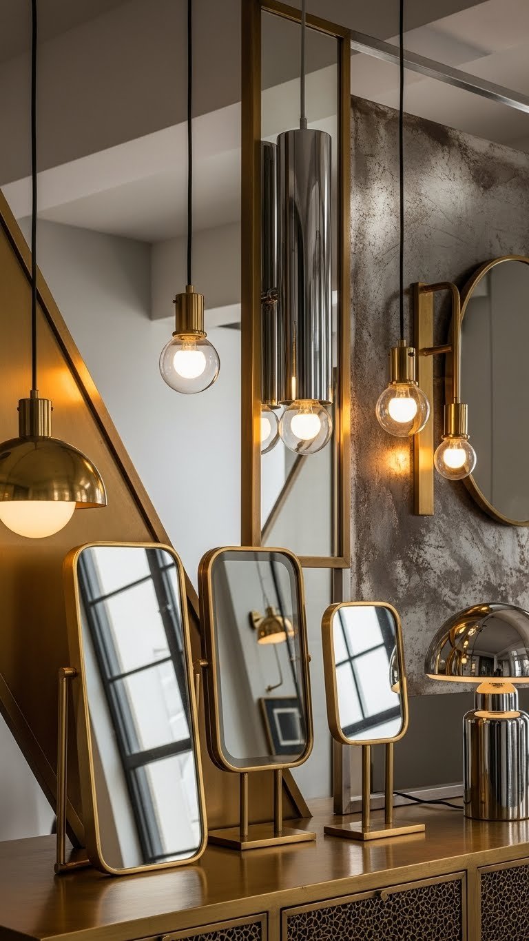 You’ll love mixing chrome shine with brass elegance, creating contemporary chic vibes.