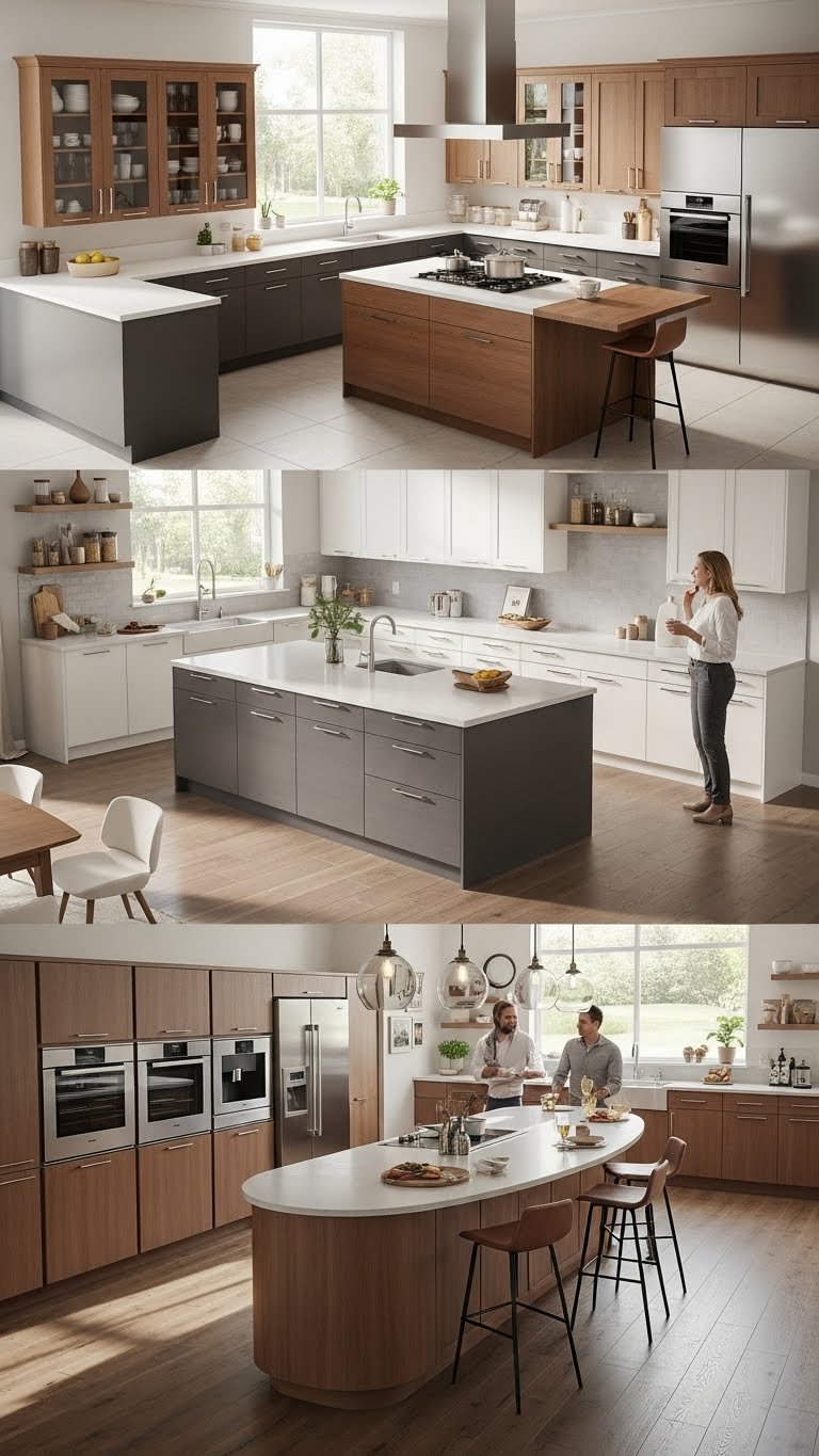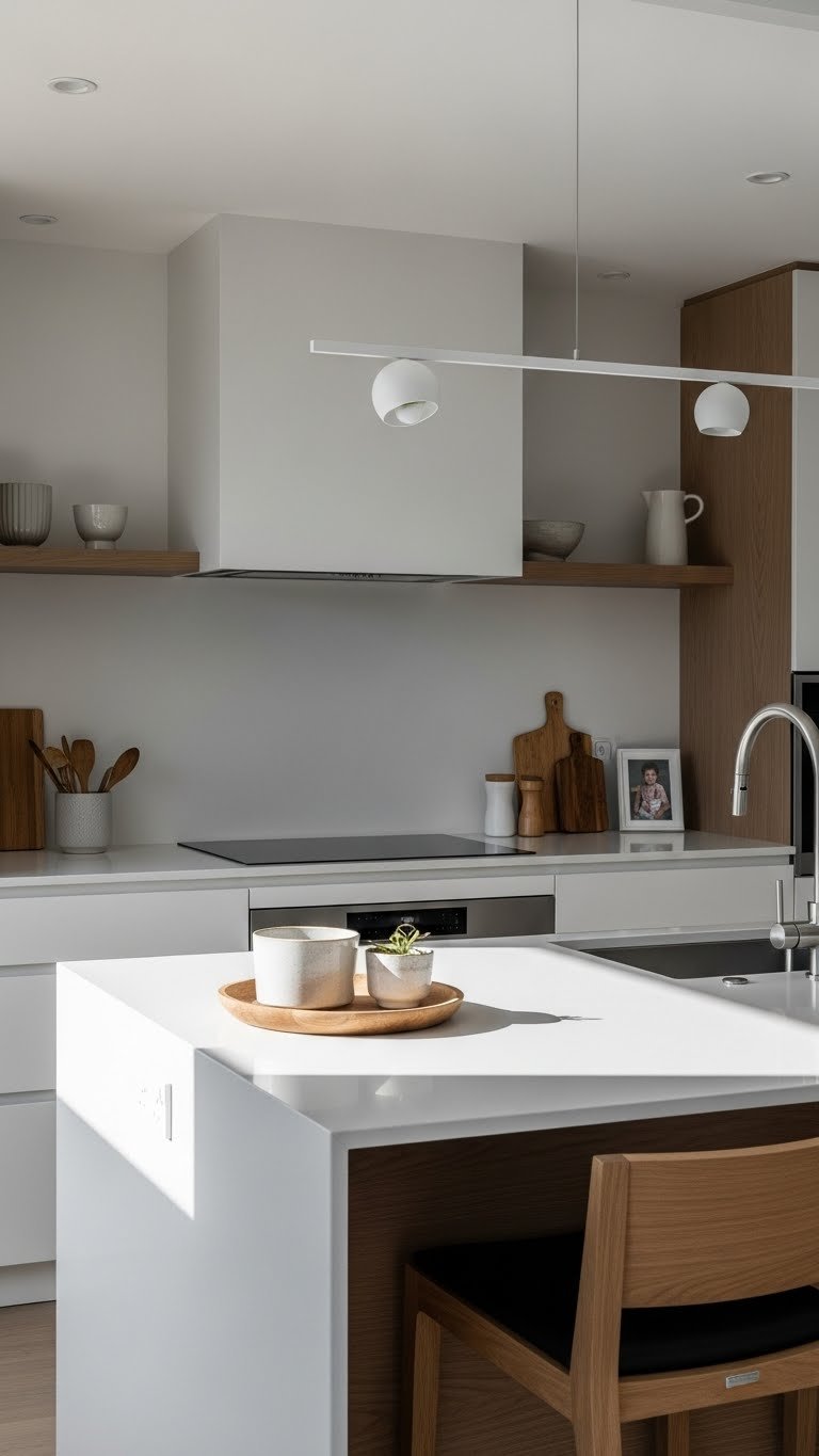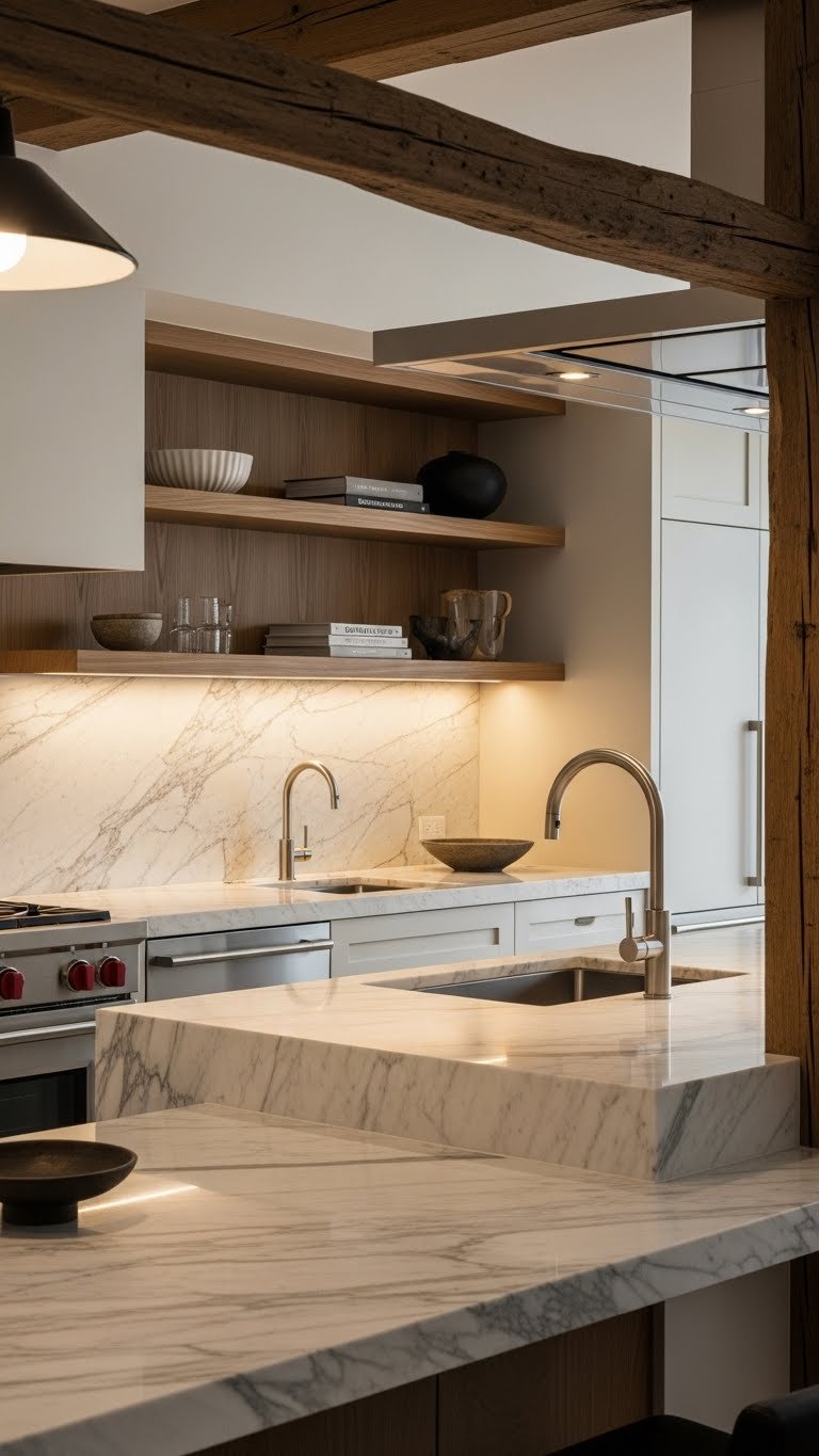 By blending wood grain textures and contrasting finishes, you’ll create depth that elevates your home’s aesthetic.