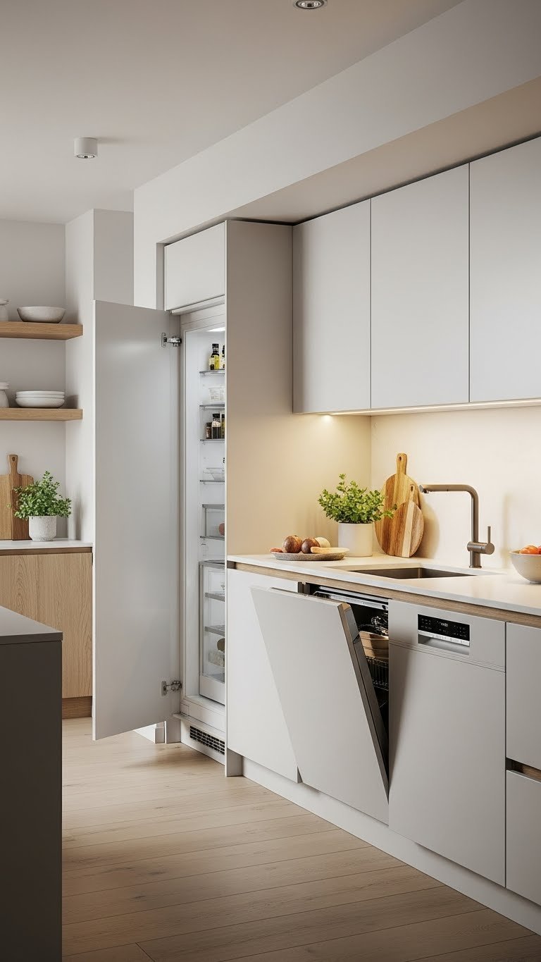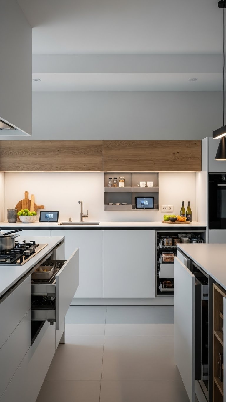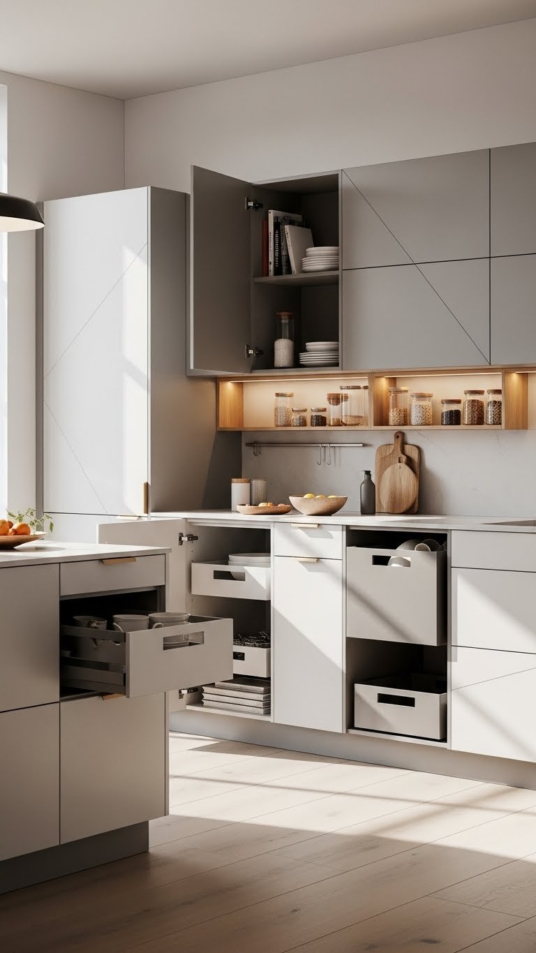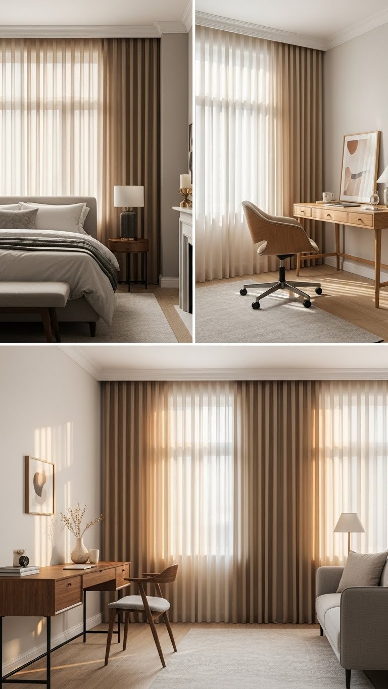 By blending wood grain textures and contrasting finishes, you’ll create depth that elevates your home’s aesthetic.