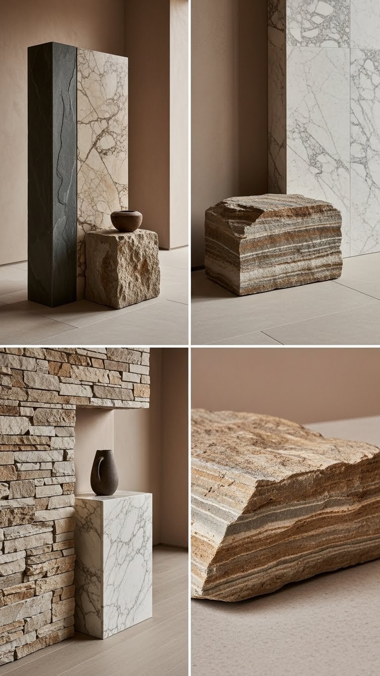 As sculptural forms command artistic attention, natural textures invite sensory engagement through organic materiality.