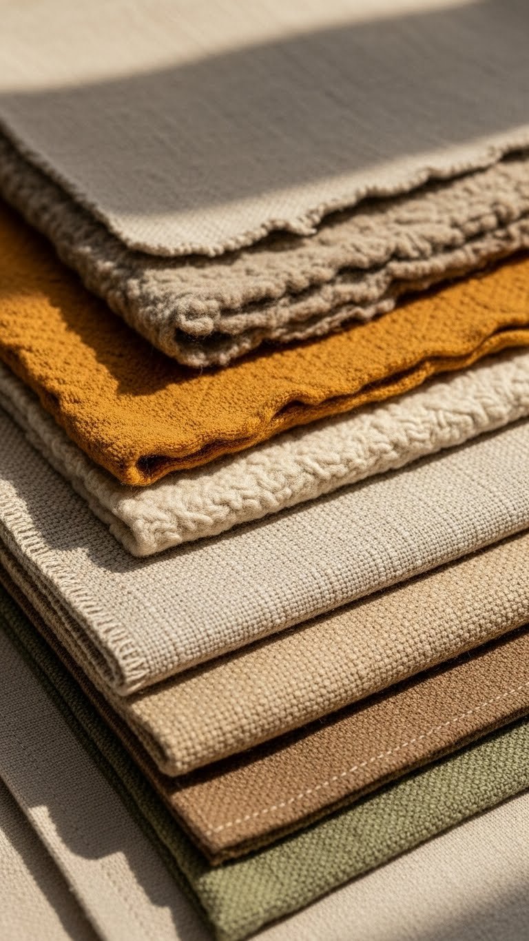 You’ll transform spaces by layering woven wallhangings and organic carpets that echo nature’s raw elegance. Tactile surfaces like raw linen, chunky wool, and handwoven textiles create depth, inviting touch and visual intrigue while grounding contemporary interiors with earthy warmth.